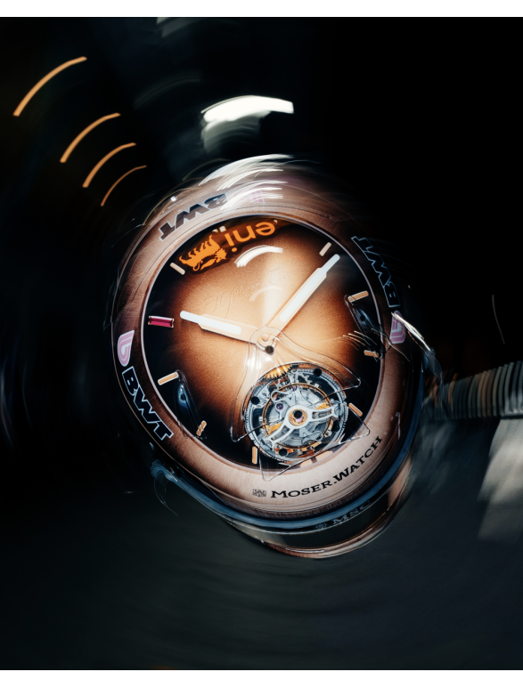 This helmet is inspired by the watch created through the collaboration between Moser&Cie and Pierre Gasly.