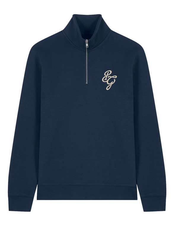 Aquí tenemos una sudadera con cremallera con la inscripción «Bogey Gang» en la espalda y sus iniciales en la parte delantera.