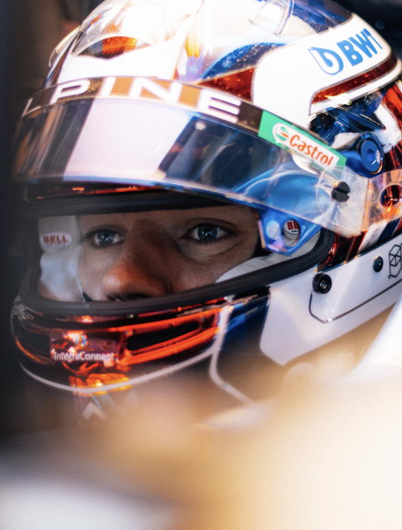 Ce casque bleu, rouge et blanc, porté par Pierre lors du Grand Prix de Silverstone 2023, est signé sur la visière.