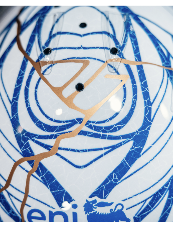 Questo casco rende omaggio all'estetica giapponese attraverso l'arte del Kintsugi, rivisitata in un'interpretazione moderna e dinamica. Ispirato al Gran Premio del Giappone 2026.
